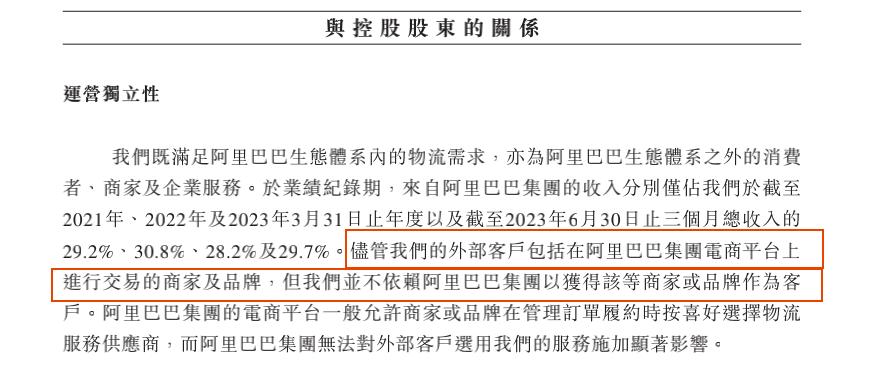 在招股书中,菜鸟试图强调其运营的独立性,「尽管我们的外部客户包括在阿里电商平台上进行交易的商家及品牌,但我们并不依赖阿里以获得商家或品牌作为客户。」