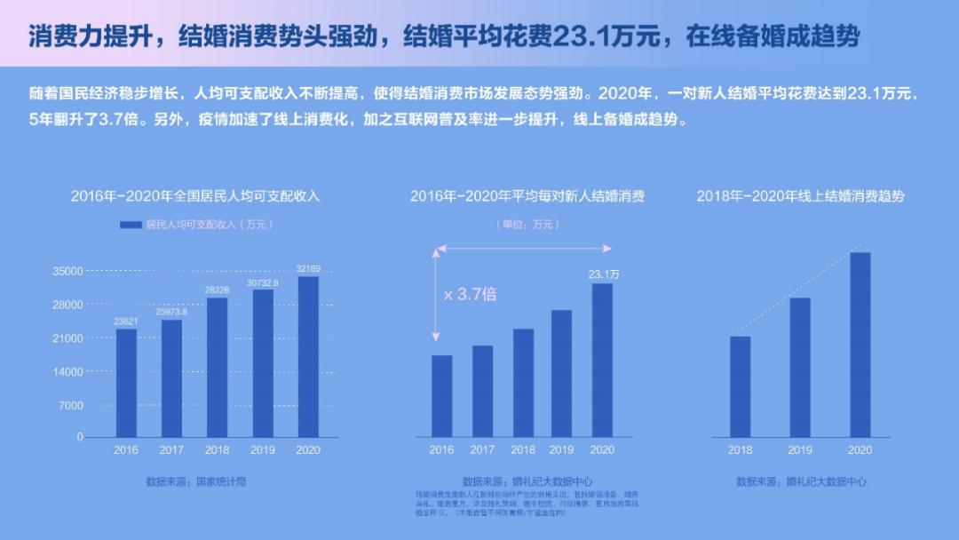 但随着婚宴价格的逐年攀升,如今靠份子众筹婚礼变得极为不现实。《2021中国结婚消费新常态用户行为洞察报告》显示,当今一场婚礼平均消费破20万,至少要收满200个1000块的份子才能“回本”。