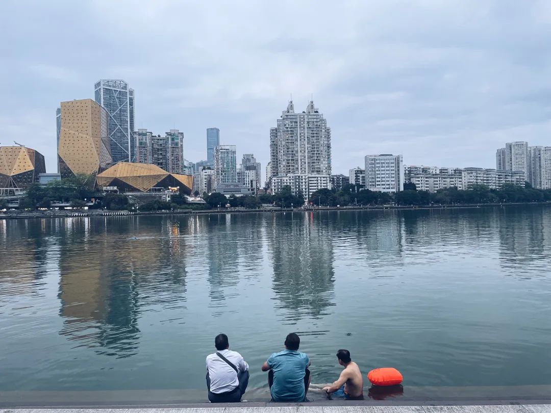 现在,颇具年代感的“江滨游泳基地宣传栏”字迹早已模糊。柳州的江边也安上了两只不锈钢的崭新“泳梯”扶手。大爷们脱掉上衣,一猛子扎进清澈的江水里,江的正对岸,正是金光闪闪的柳州风情港。