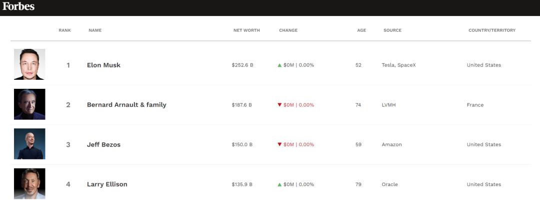 △截至北京时间10月1日,福布斯全球富豪榜(图源:网站截图)
