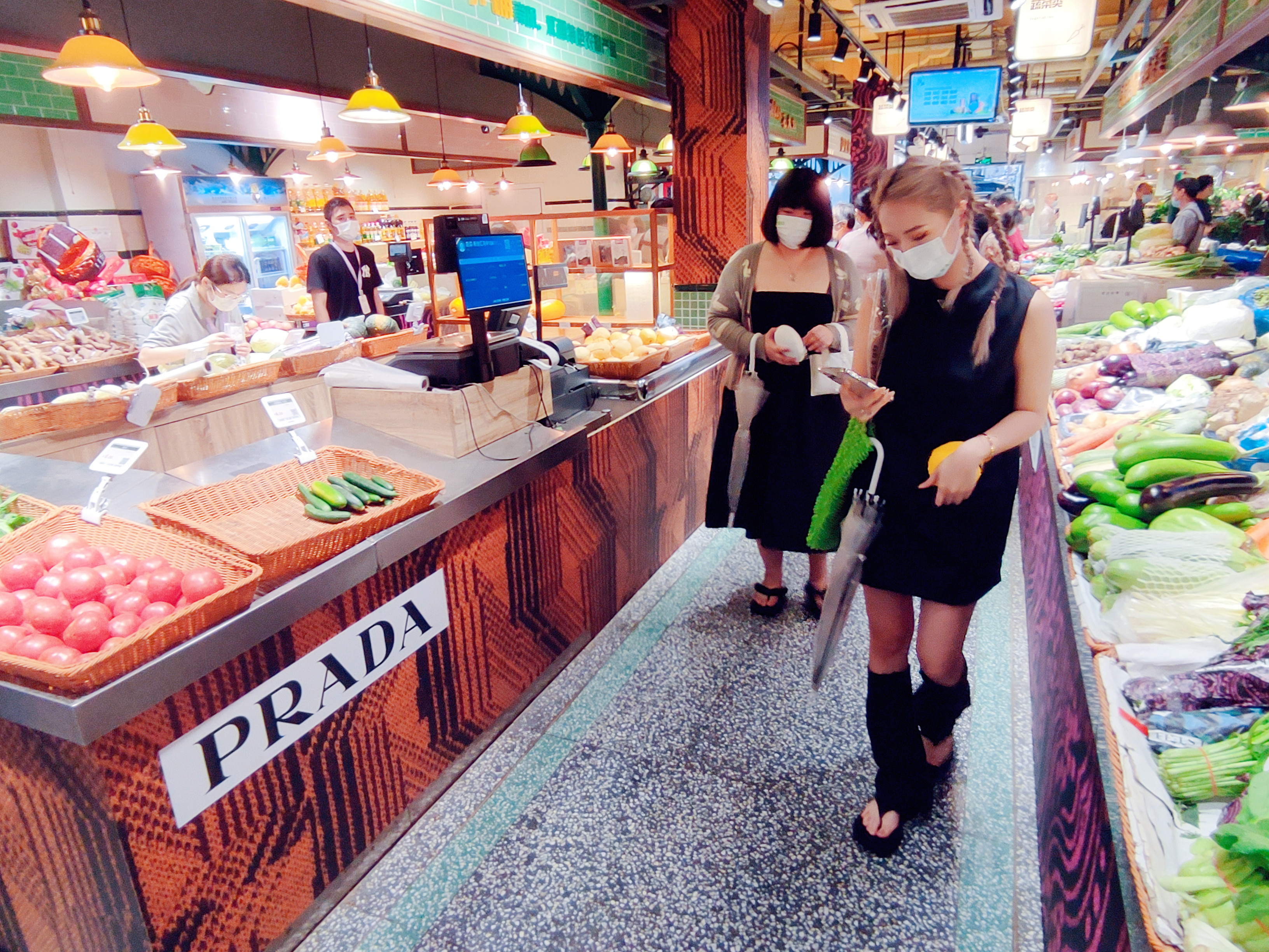 2021年9月29日,上海,乌中市集变身Prada菜市场,市民排队打卡。