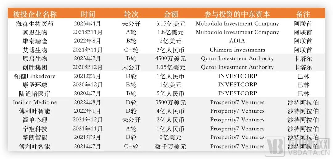 近几年中东资本在国内参与的部分医疗企业融资事件,数据源于动脉橙