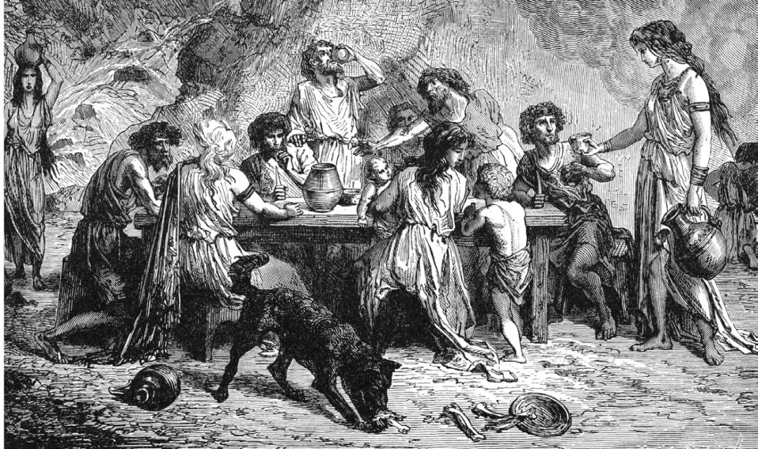 考古发现表明,人类在两三万年前就由“协作”产生了分享食物的需要,而社群聚在火堆边聚餐,又进一步促进了脑部的进化。后来,人们出于贸易、宗教、庆祝活动等需要走出家门,到公共场合与他人共食,分享同样的空间、同一个盘子里的食物,社会学家格奥尔格·西梅尔(Georg Simmel ,1858-1918)称之为“共生性”,即与他人的“共同存在”。