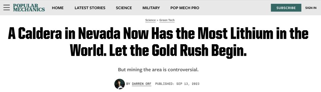 美媒标题:内华达州的火山口现在拥有世界上最多的锂。让淘金热开始!