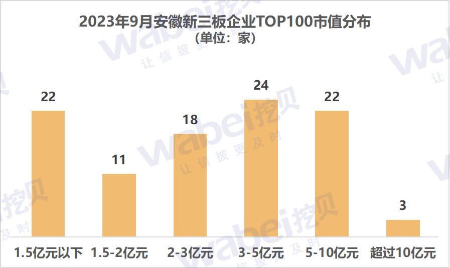 挖贝研究院梳理出2023年9月安徽新三板企业市值TOP100(以下简称:“榜单”或“TOP100”),3家企业市值超过10亿元,25家企业上半年净利超1500万元,20家企业冲击北交所。