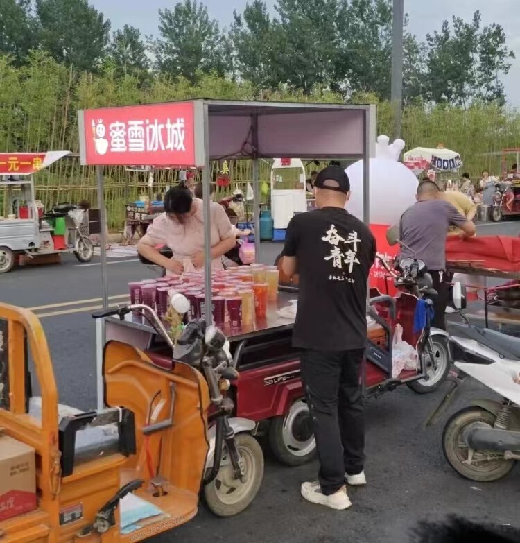 甚至并不固于门店模式,最近蜜雪冰城还走向了地摊经济。有网友的视频显示,蜜雪冰城的员工开着移动奶茶车,在广场上摆摊售卖的场景。门店加工好,一推车带上100杯,直接走到消费的第一线。而对于蜜雪冰城公司来说,门店不是收佣的核心,加盟商能卖出去,后续多多采购原材料,就是对公司有利。