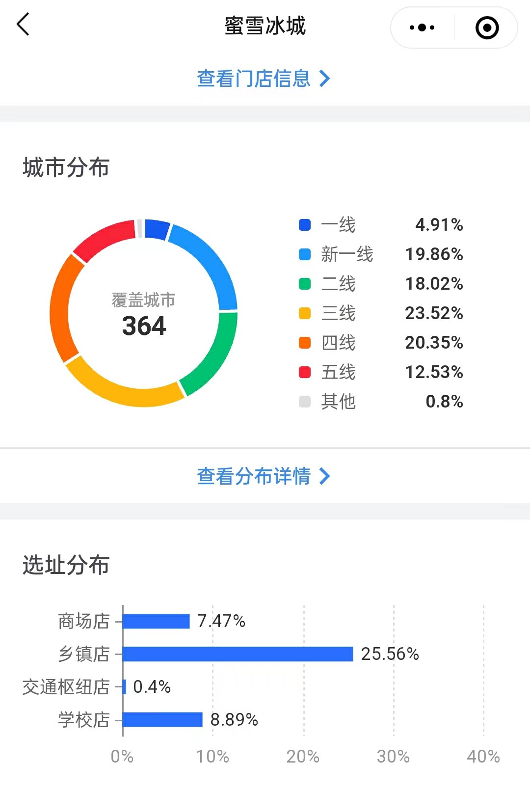 五线城市都有12.53%的占比,在一线城市的占比才4.91%,但是开店增速已经骤降。这才是蜜雪冰城的故事难以赢得资本青睐的真正原因,说明蜜雪冰城在一线城市扩张很难。