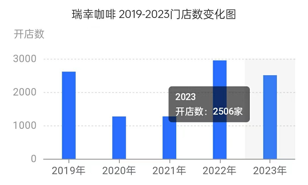第三名的瑞幸,开店速度也走出了2020-2021年的低谷。2022年开出2950家,2023年截至10月份,已经开出2506家。今年6月份,瑞幸的第10000家店在瑞幸总部所在地厦门开业。