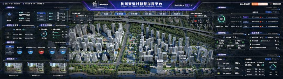 在超过一万名运动员、近4000名技术官员和5000名媒体人员生活居住的亚运村,各项管理数据和服务资源也被放置在了云端,管理人员可以在数据大屏上面实现高效智能调度。
