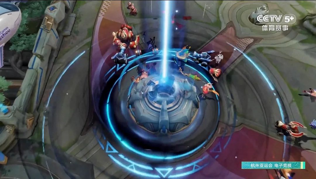 9月26日晚上19:47,杭州电竞中心,马来西亚队的“主水晶”被攻破,中国队夺得了亚运历史上首枚电竞项目金牌。围绕场馆一整圈的摄像机捕捉了各个角度的现场实拍,集合比赛界面、比分系统、解说系统,以几乎没有延迟的速度,把来自杭州的画面传递到了全球观众的电视、电脑、手机屏幕上。