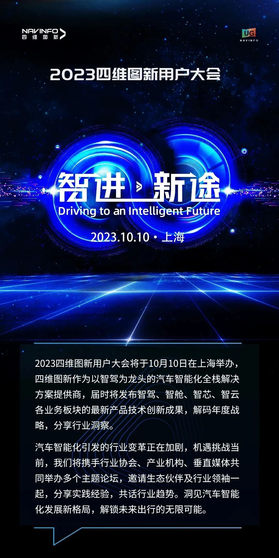 此次四维图新用户大会,诚切希望能够通过参会嘉宾真诚的交流和深邃的思想的碰撞,来传递市场价值,并通过大会建立起一个交流、共享的平台,这也将大有裨益。10月10日,大会与您不见不散。