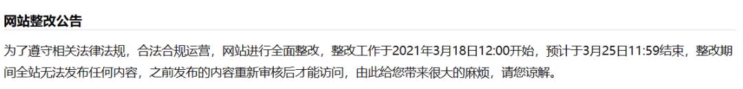 刚开始是因为网站运营的疏忽,导致整个网站面临着全站内容审核的境况,并且还被罚了几十万。