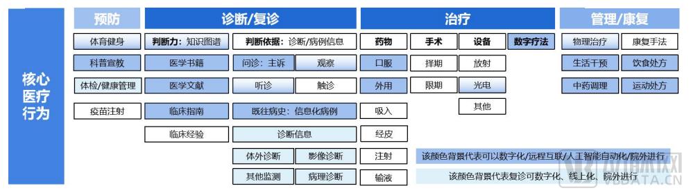 (数字疗法重构核心医疗流程和触达界面,分步骤全面渗透 图片来源:蛋壳研究院)