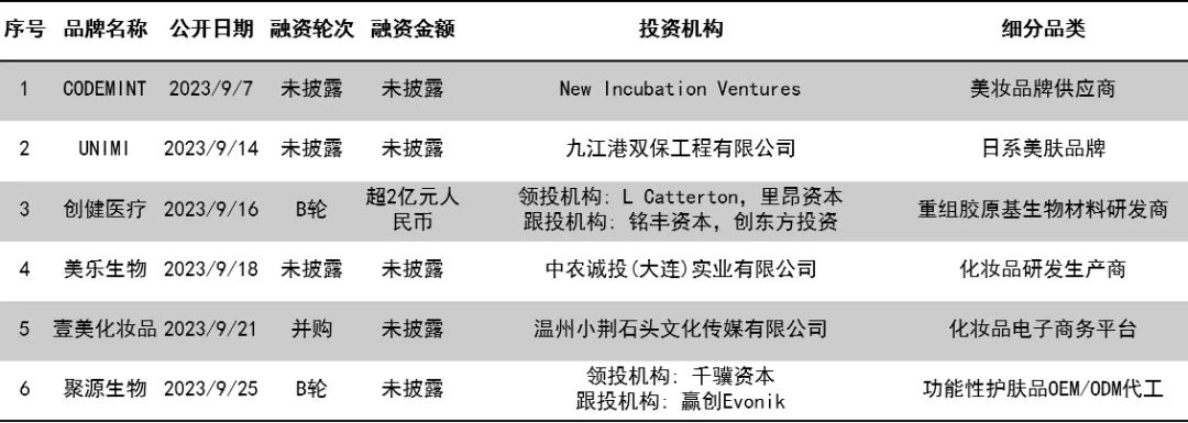 与花西子的危机不同,“成分党”和“功效党”依然受到追捧,仅9月,就有重组胶原蛋白基生物材料研发商“创健医疗”、功效护肤代工品牌“聚源生物”获得融资。