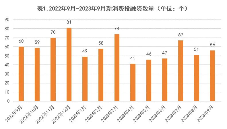 据蓝鲨消费不完全统计,2023年9月1日至9月30日,消费领域公开投融资事件56起,环比增加9.8%,同比下跌6.7%。