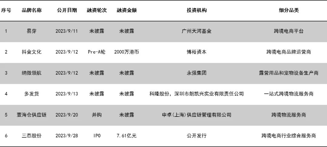 表10:2023年9月消费领域获得融资的跨境出海项目
