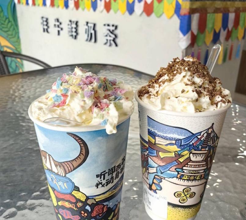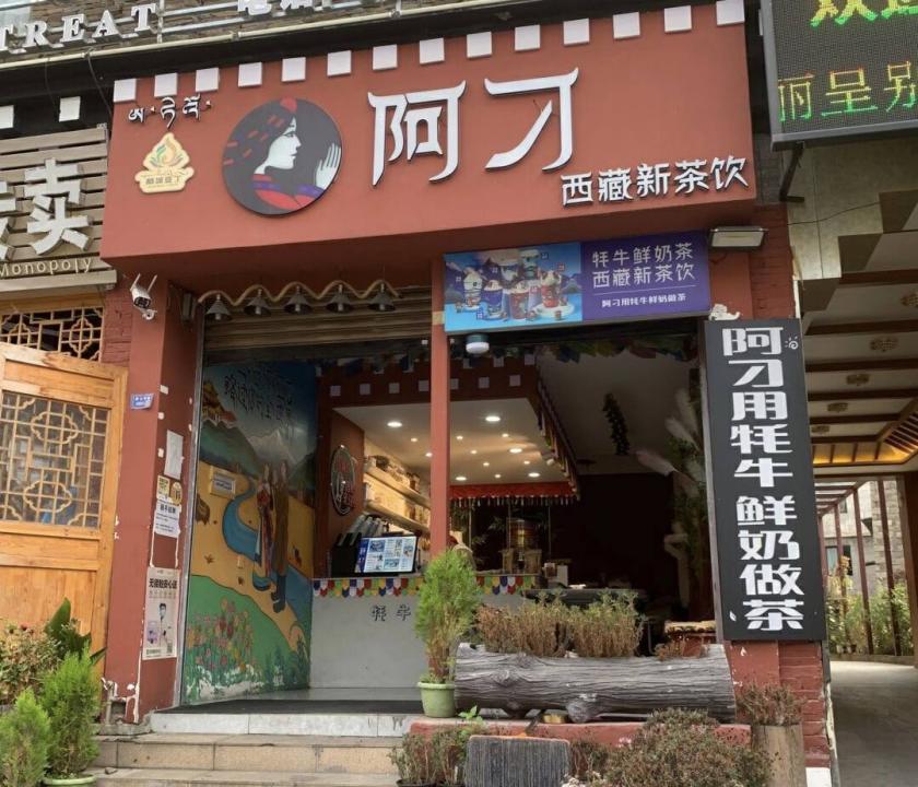 阿刁奶茶是藏区特色的集合体,以牦牛奶、青稞作为特色原材料,凭借“扎西德勒”“雪域青稞”等畅销单品,一跃成为吸引前来游客的“稻城必点”。