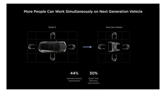 特斯拉表示,开箱工艺会让工厂制造人员将减少40%,制造所需的空间和时间也将减少30%,组装费用降低到目前Model 3或Model Y的一半。注意是“组装费用降低到一半”,而非“整车成本”。