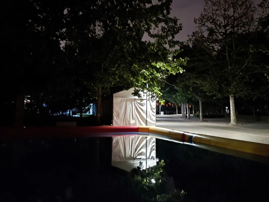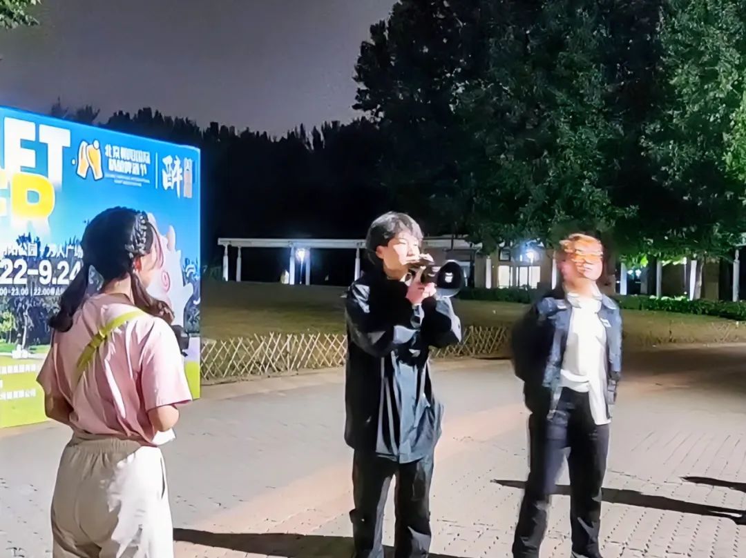 朝阳公园游戏区域最北边的小树林里,一盏惨白的路灯下,有独自一人的大哥拿着话筒安静地唱歌。旋转木马不再转动,巨大的游乐设施正在沉睡,给小朋友钓鱼的人工水池仍在发出咕噜咕噜的冒泡声,我和朋友打开手机的手电筒,从其中穿过。