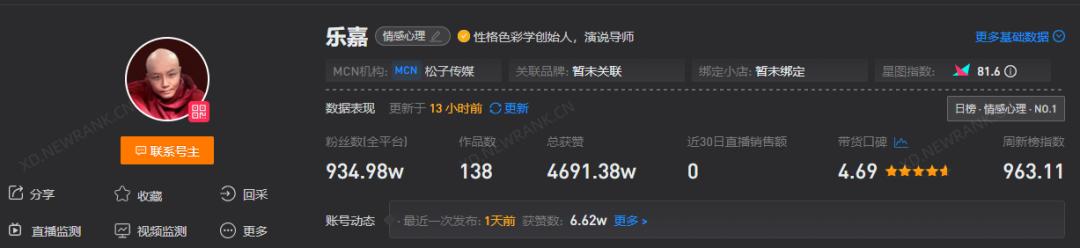 于是乎,我们会疑惑,“乐嘉”博主的账号接连占据涨粉帮高位,他的优势是什么,他抓住了哪些情感密码,从而解开了流量趋势呢?