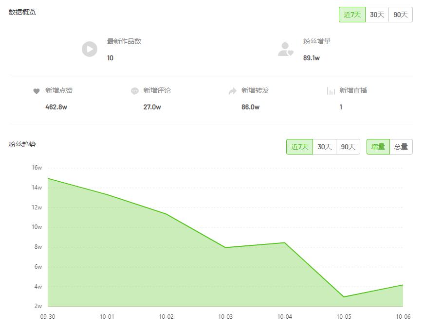 根据新榜数据显示,在2023年9月25日到2023年10月1日这一周,“乐嘉”位列抖音涨粉榜第一位,一周涨粉超98万。不仅如此,在飞瓜数据的统计下,若以9月30日到10月6日为一周计算,“乐嘉”的涨粉也超过89万。可以说,连着2周,其账号的增量趋势都比较明显。