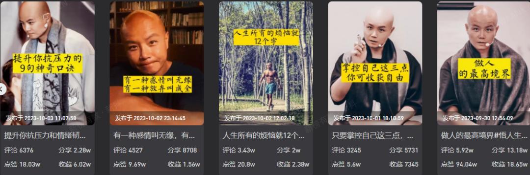 三是技巧足够多,脚本的构思、拍摄的技巧、主播的优势等,用独特性弥补各种不足,比如一禅小和尚, 也能让用户耳目一新。