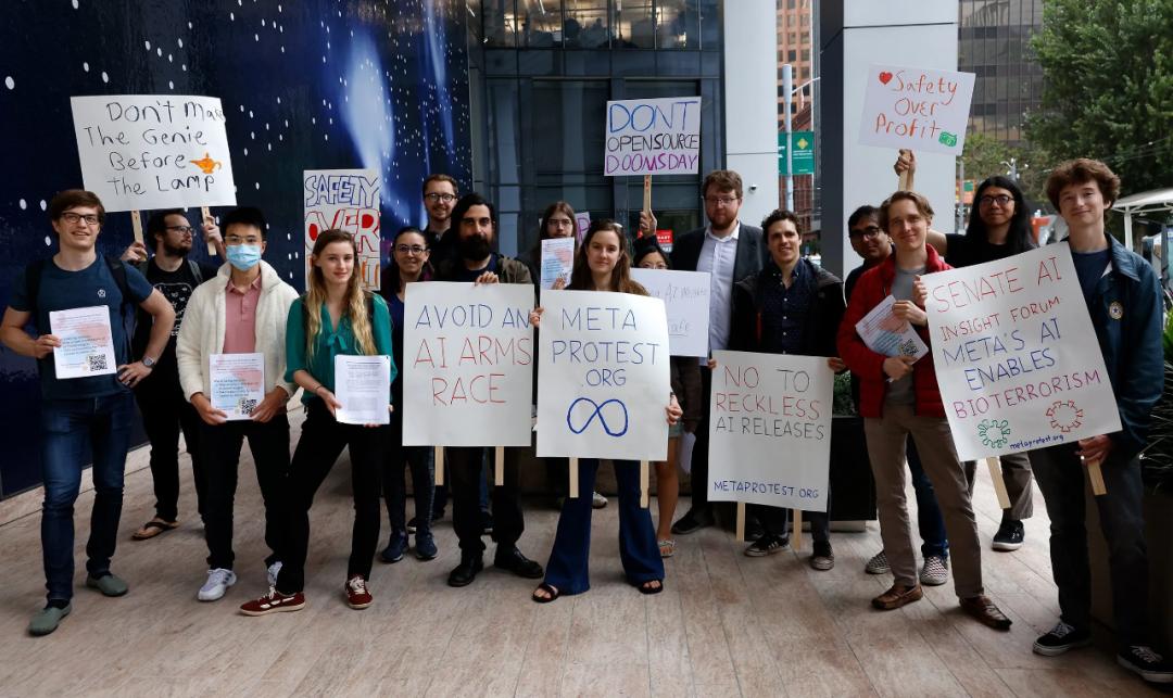 开放模型权重被指将导致AI失控,Meta遭举牌抗议,LeCun:开源AI社区如火如荼