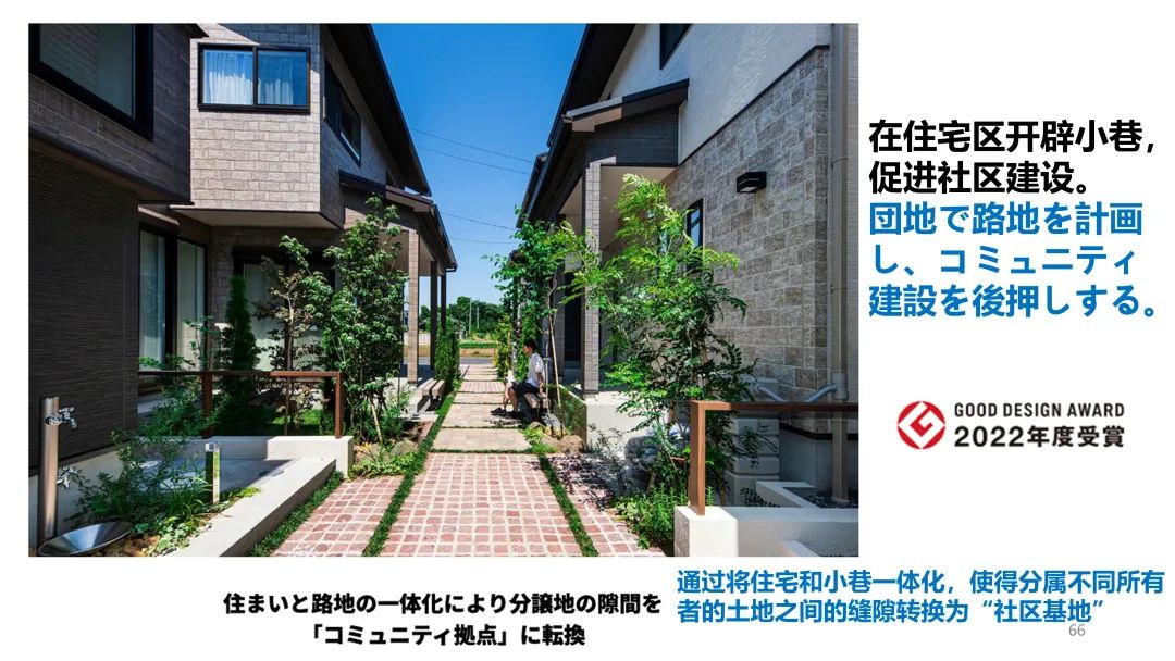 大家知道日本就像那个哆啦A梦一样,大家都住个小别墅是吧?小别墅里面,都一家一户挨得非常近的,你伸手能摸到隔壁墙的程度,但现在他们开始刻意地在一家一户之间留出一个小小的,有一米宽的小路来,就这么一个创意。