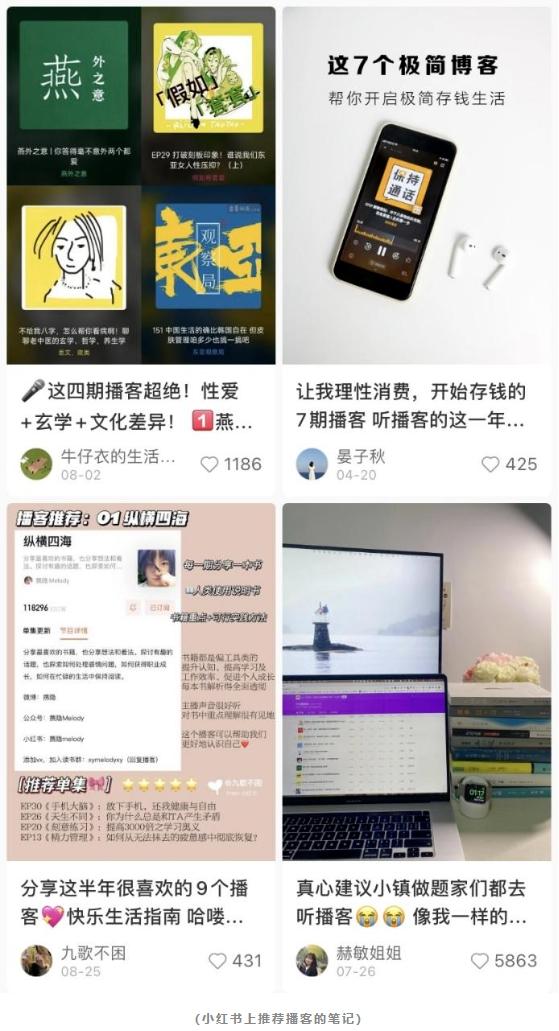 在今年2月举行的“喜马拉雅2023创作者大会”上,喜马拉雅创始人兼CEO余建军说:“播客不等于小众,也不一定是音频,播客是一切语言类原创内容。喜马拉雅远远不止是听书,播客型主播有非常大的空间和机会。”在小红书上,以推荐播客为主题的笔记大多收获了不小的流量和点赞,播客被认为是一种「打破信息差、提升认知」的生活方式,它比阅读更轻松,比短视频更有深度。