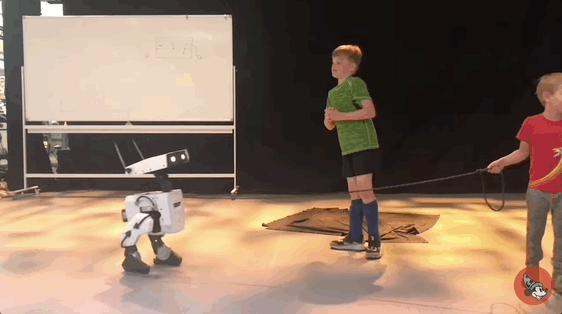 偷袭推它,或是故意拖拽它脚下的地毯,它都能应对自如: