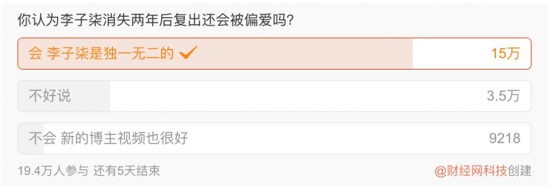 有近20万网友参与投票,其中15万网友都投给了“会,李子柒是独一无二的”,在评论区也有数千名网友留言表达了对李子柒的偏爱。