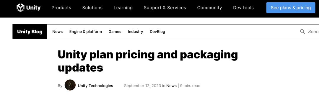 就在上个月,Unity 发布公告表示: