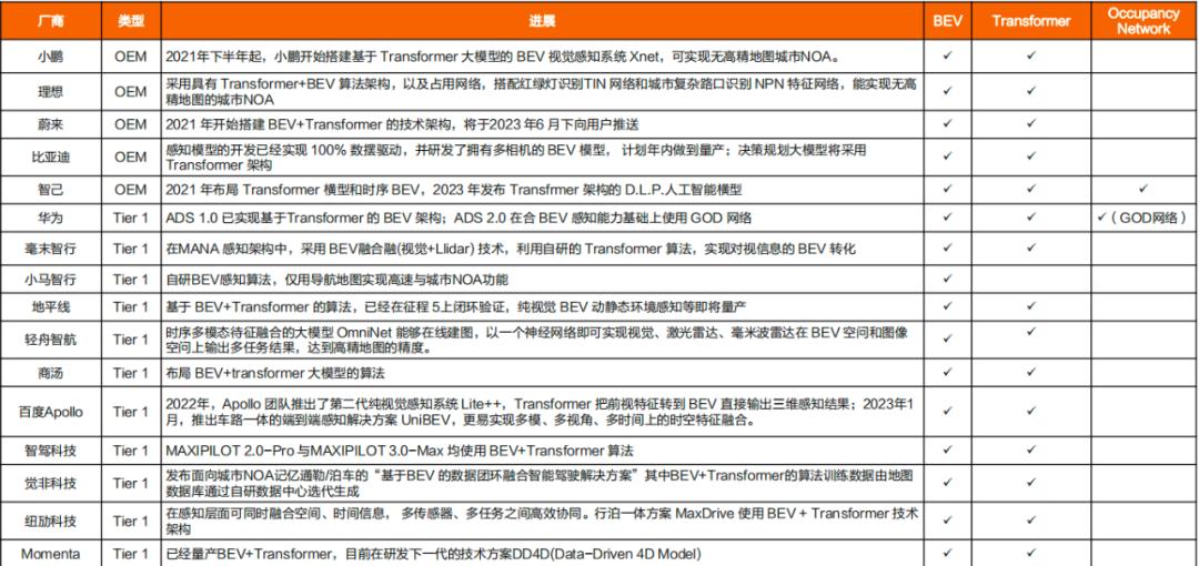 时间上特斯拉有领先优势(2020年),国内小鹏、华为、理想等均是今年才切换至BEV+Transformer。