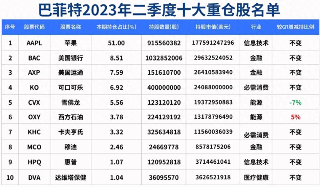 在此之前,巴菲特一直对科技行业不“感冒”,偏爱金融股、消费股。近年来,他加大了对科技股的投资,其中,苹果是巴菲特的“最爱”。截至6月底,苹果占伯克希尔3534亿美元股票投资组合的一半左右。