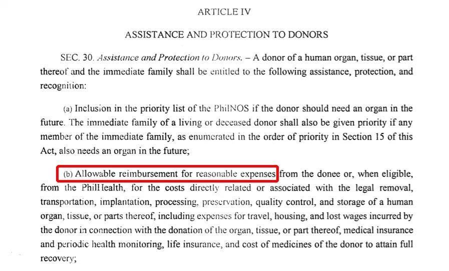 菲律宾《人体器官捐献法》允许捐献者获得一定的酬劳