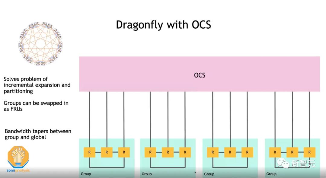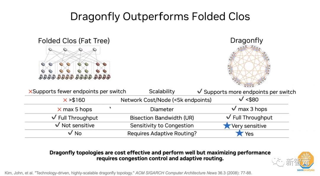 与谷歌选择6D Torus不同,英伟达更倾向于采用Dragonfly结构。
