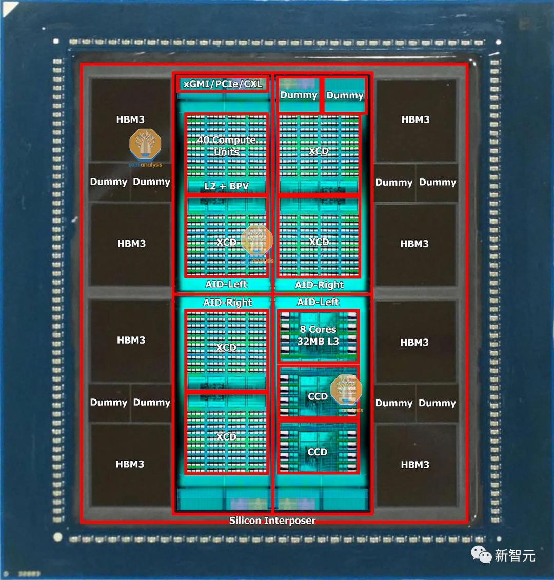 AMD给MI300X的封装令人印象深刻,他们大量塞入了更多的计算和内存,希望能超越一年前的H100,从而在纯硬件上超越英伟达。