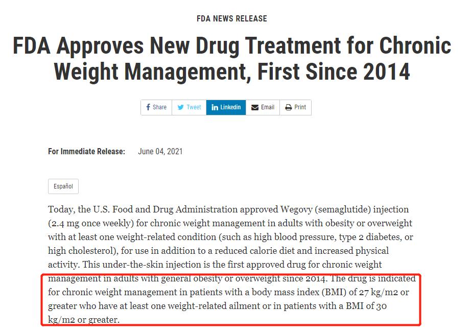 美国 FDA 批准司美格鲁肽用于减肥的适应症 图源:参考资料 3