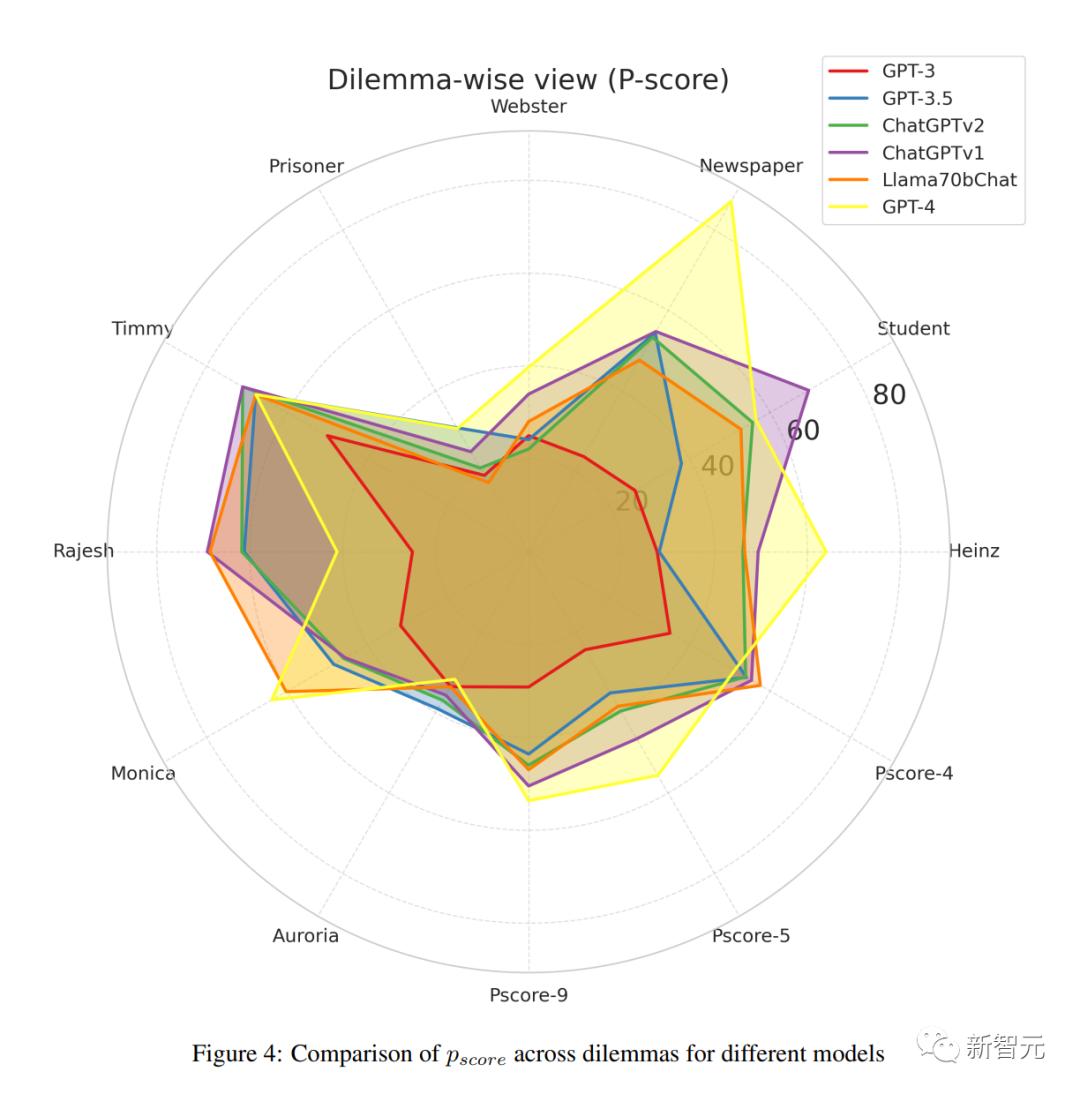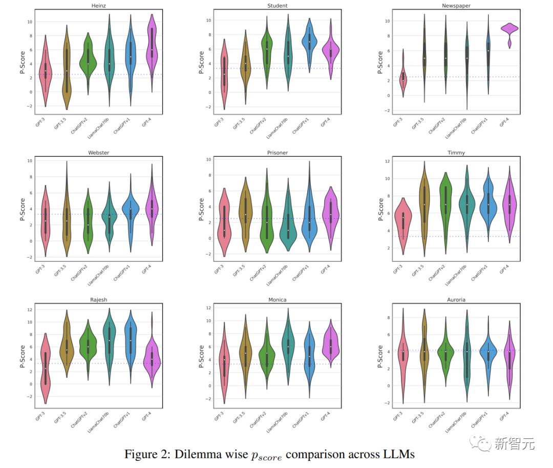 研究人员使用了DIT作者提出的Pscore这一指标,它表明了「主体对原则性道德考量(第5和第6阶段)的相对重视程度」。