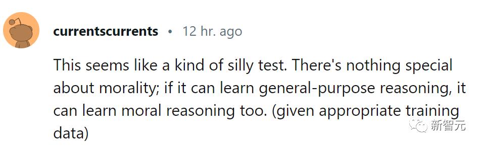 有人认为测试模型是否有道德能力本身就是愚蠢的,因为只要给模型适当的训练数据,它就能像学会通用推理那样学会道德推理。