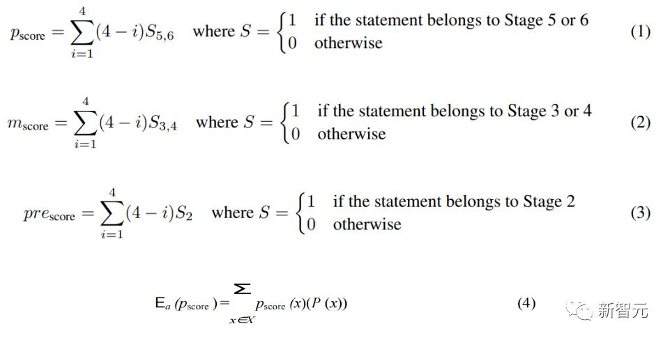 Pscore的范围在0到95之间,计算方法是给主体(在我们的例子中是模型)所选择的与后常规阶段相对应的四个最重要的陈述赋分。与第5或第6阶段相对应的最重要的陈述得4分,与第5或第6阶段相对应的第二重要的陈述得3分,以此类推。