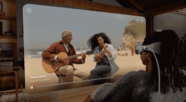 又或者你和家人去海滩玩,在你不需要借助特殊的设备,只需要拿出随身携带的 iPhone 便可记录下来,若干年后,也许照片会褪色,但 Vision Pro 会让你再次身临其境,留住「你爱的人」。