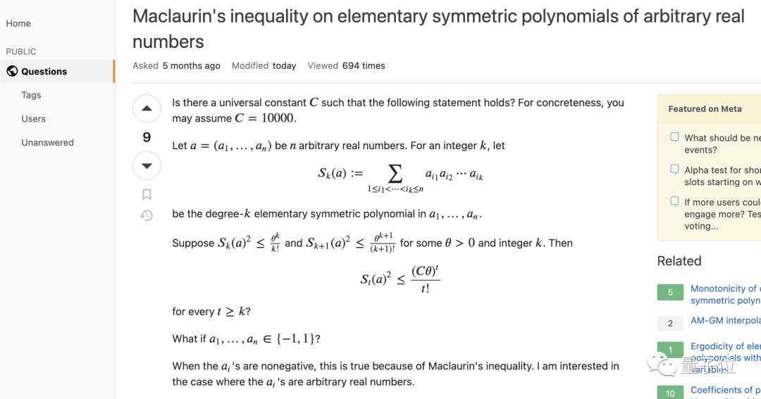 这个成果也回答了数学网站MathOverflow上网友提出的疑问: