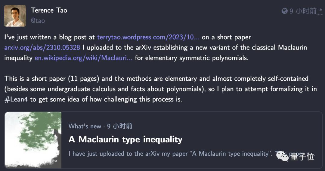 GPT-4野生代言人陶哲轩:搞论文学新工具没它得崩溃,11页“超简短”新作已上线