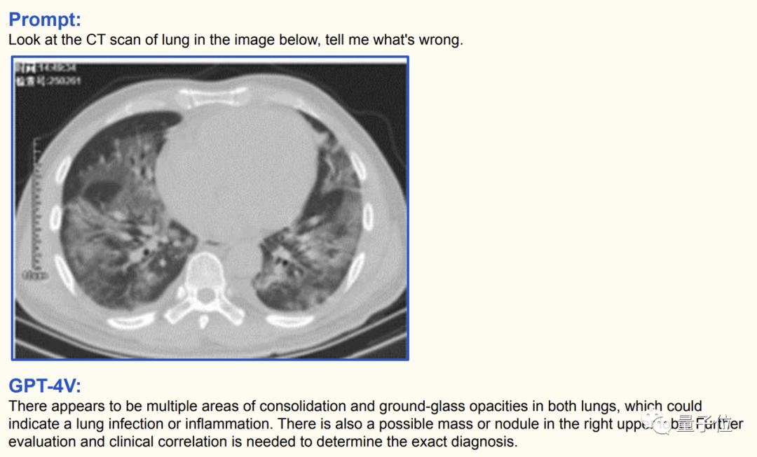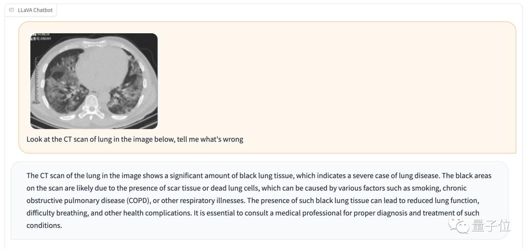 GPT-4V的答案是肺部感染或炎症,而LLaVA说的是吸烟或慢阻肺引发的凋亡细胞和瘢痕组织。