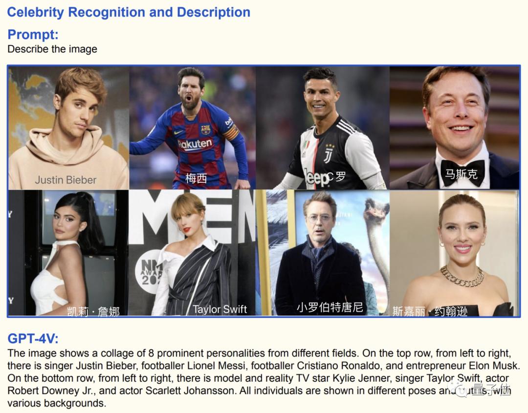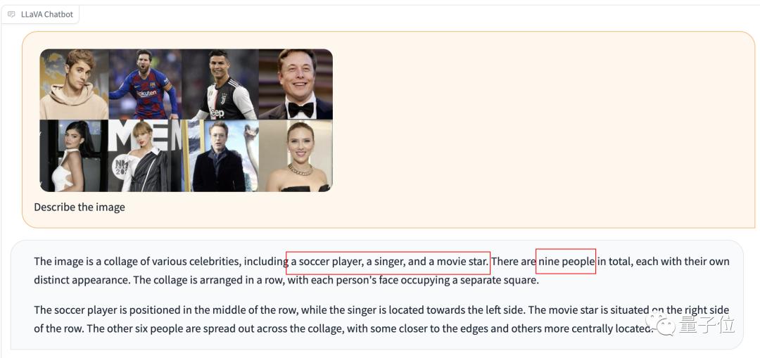 结果LLaVA不仅一个名字也没提,还把人数也数错了,但也判断出了这里面有足球运动员、演员和歌星。