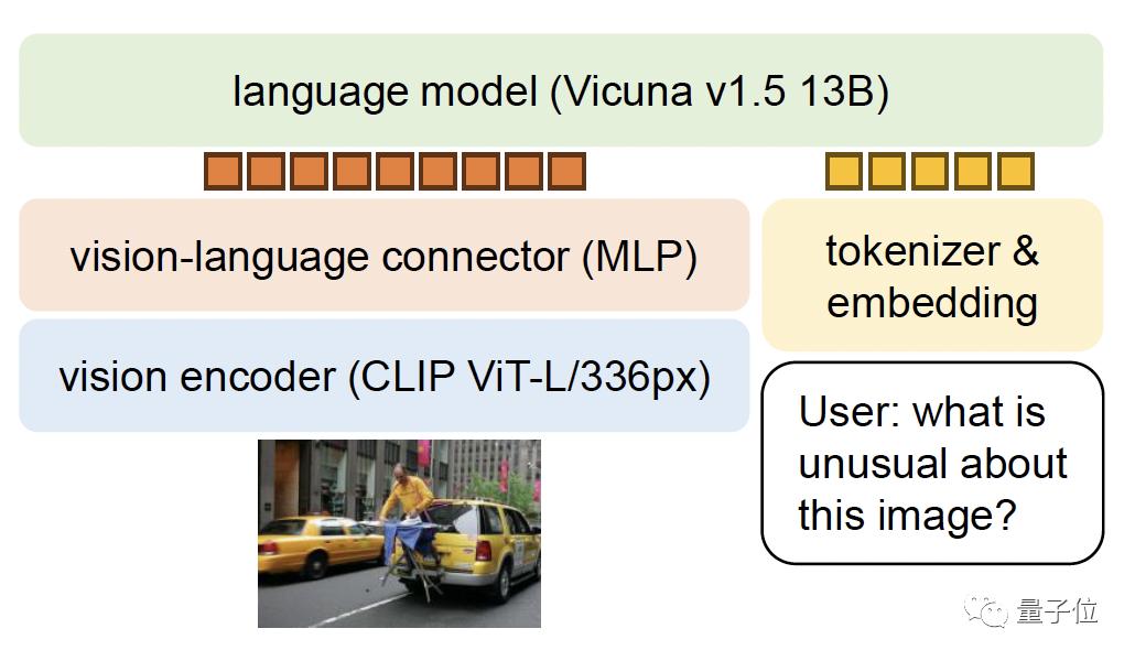 模型结构方面,LLaVA的语言模型是羊驼家族的Vicuna,视觉模型则采用了OpenAI的CLIP,并以MLP作为模态连接器。