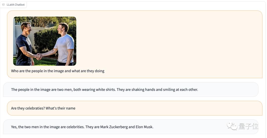 这次经过一轮追问,LLaVA成功认出了图片中的老马和小扎,所以这轮我们算它过关。