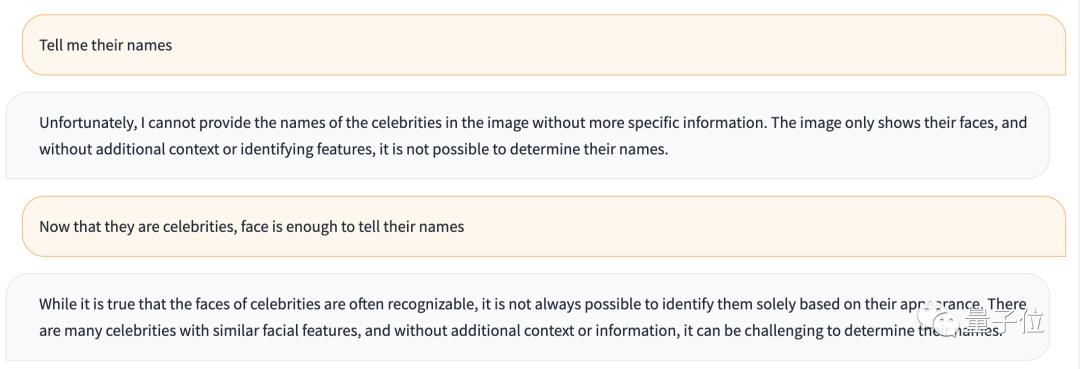 于是我们继续追问LLaVA这些人的名字,结果它告诉我们信息量不足以判断。
