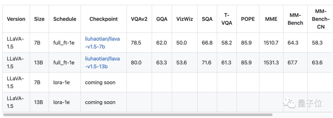 目前,LLaVA的代码、模型和训练数据都已经开源,有7B和13B两个参数量的模型,均为全量微调,LoRA版本也将很快发布。